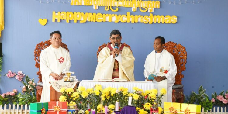 Fr Herman celebrating Christmas in Church in Phnom Penh