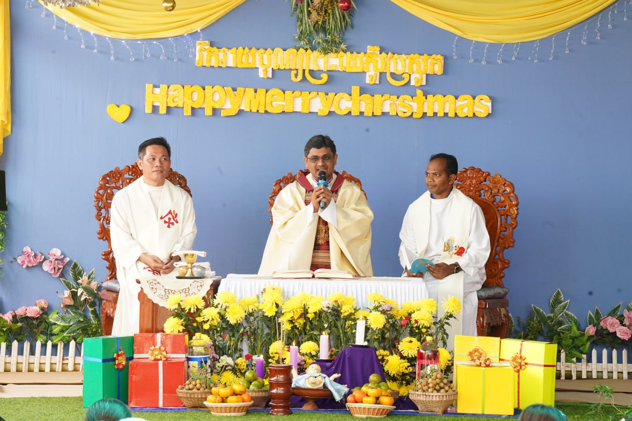 Fr Herman celebrating Christmas in Church in Phnom Penh