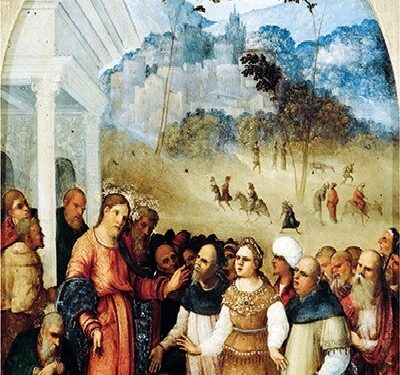 Ludovico Mazzolino’s 1522 painting of Christ and the woman taken in adultery.