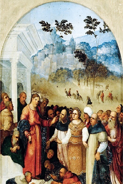 Ludovico Mazzolino’s 1522 painting of Christ and the woman taken in adultery.